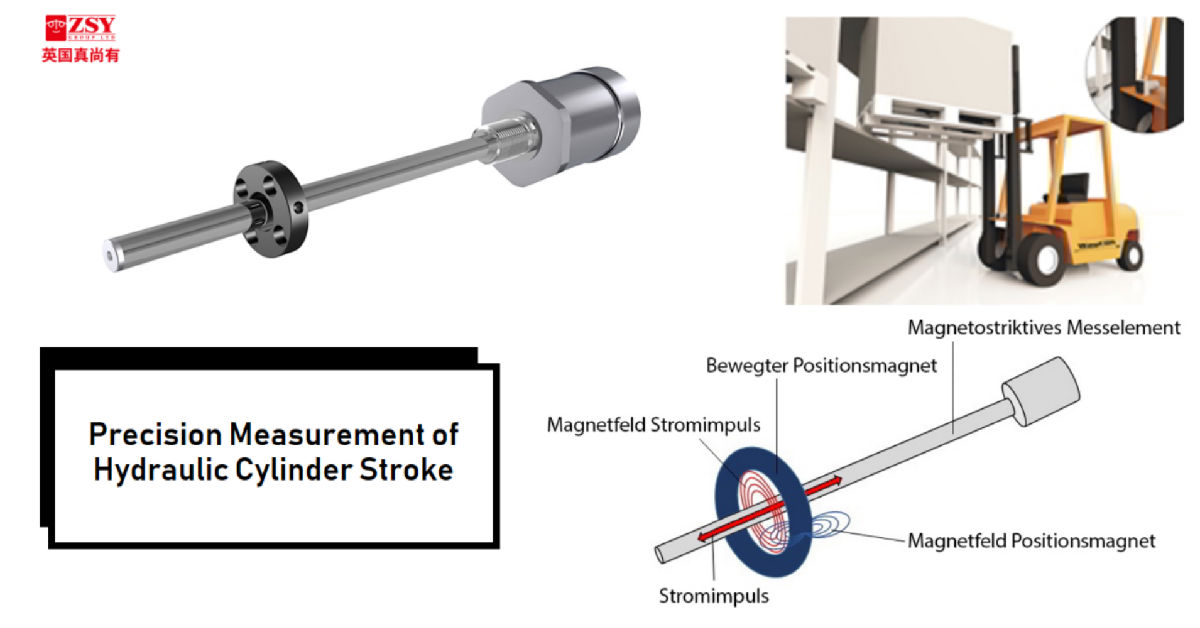 位移传感器是一种常用的液压缸行程测量方法,通过将位移传感器安装在液压缸上来测量活塞的行程,优点是可以提供高精度的行程测量,并且可以实时监测液压缸的位置。目前用于液压缸行程测量的位移传感器有使用电阻、电容或磁感应等多种不同技术,其中磁致伸缩传感器用于液压缸行程测量的位移传感器中的佼佼者,可以满足大多数液压系统的需求。