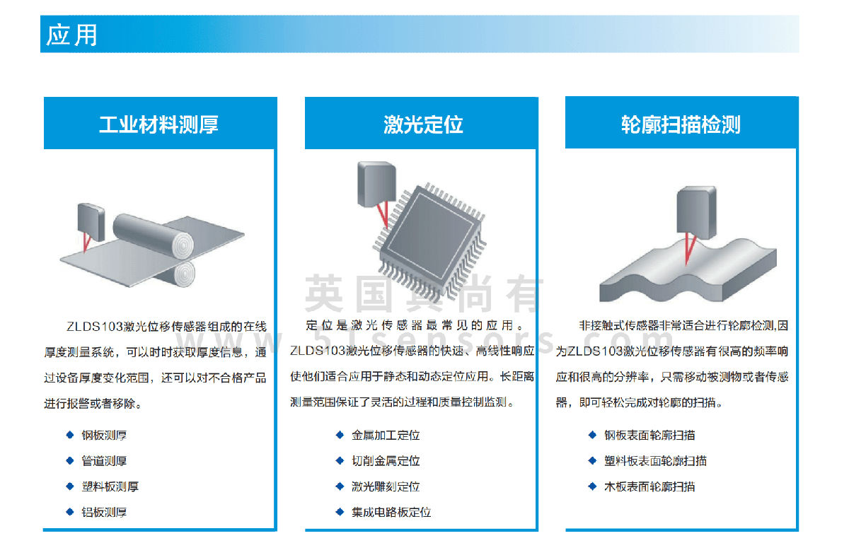 ZLDS103还提供多种量程选择,包括10mm、25mm、50mm、100mm、250mm及500mm等,能够适应不同厚度材料的测量需求。特别是其双激光选项,标准红色半导体激光(660nm波长)及可选的蓝光或UV激光器(405nm或450nm波长),使其在高温物体和有机材料的测量方面表现出色,进一步拓宽了应用范围。在环境适应性方面,ZLDS103同样表现不俗,防护等级达到IP67,能够适应恶劣的工作环境。工作温度范围在-10°C至+60°C之间,抗振动和抗冲击能力也使其在工业应用中更加可靠。ZLDS103的非接触式测量方式不仅避免了对材料表面的损伤,还能够进行实时监测,快速捕捉材料厚度变化,提升了生产效率。